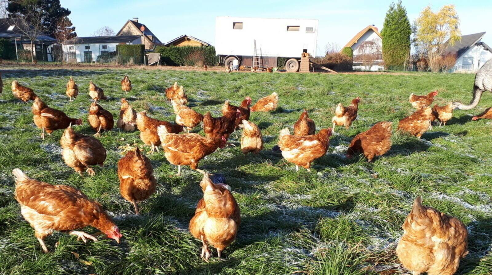 Wir halten Hühner im Hühnermobil mit viel Auslauf und gutem Gentechnischfreien Futtermittel mit viel Karothien , daher eine tolle Dotterfarbe und einen einzigartigen Geschmack